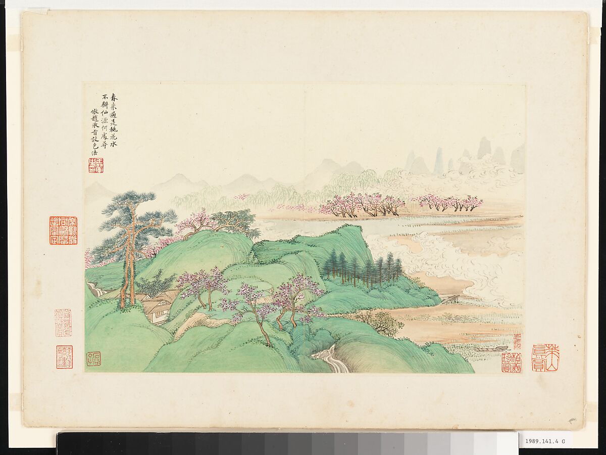 Scholar looking at a waterfall - Zhong Li – I’ll just copy from the website for this one, “This strongly painted composition, the best known of Zhong Li's signed works, is a classic Ming academic-style picture; it continues Dai Jin's (1388–1462) monumental refiguration of the Southern Song academic manner. The interior dynamics are even more spectacular than in earlier works in the tradition, from the explosive energies of the plunging waterfall and dramatically towering cliff face to the twisted pines coiling out like springs from the stone walls. There is also something quite imperial in the pose of the seated figure on the garden terrace, leaning back like the master of his universe to observe the potent forces of nature as they conduct a special performance for him alone.” Couldn’t have said it better.